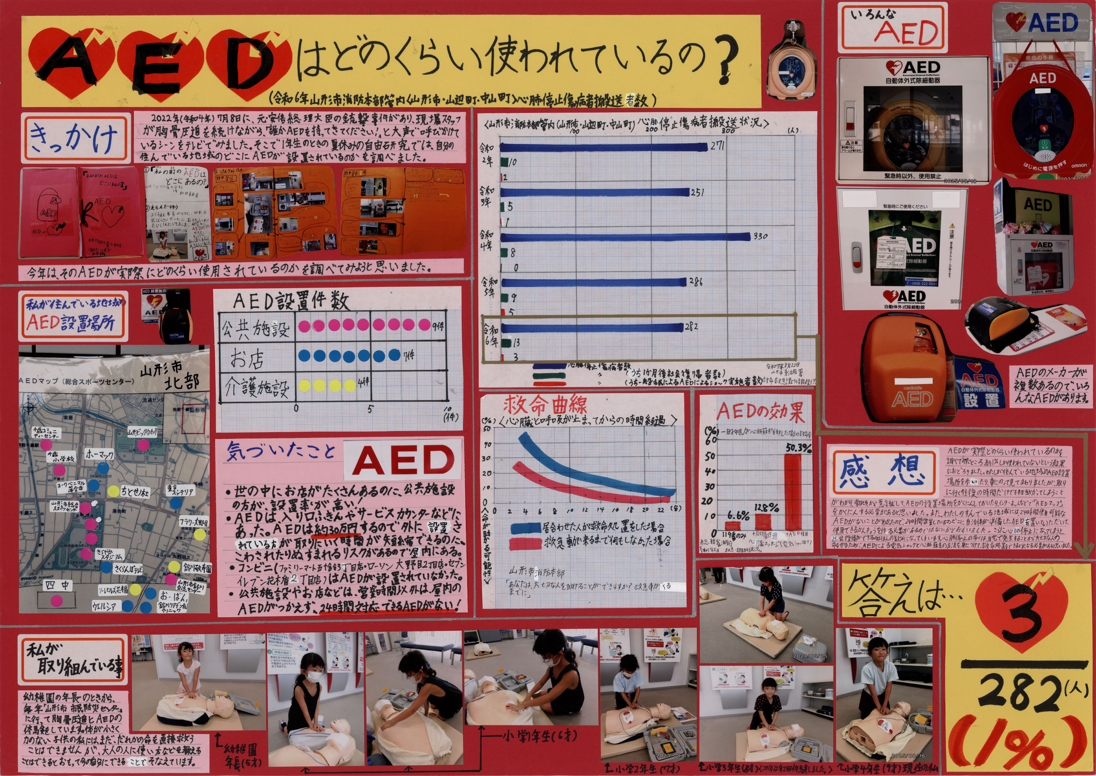 第2部 | AEDはどのくらい使われているの?(JPG:2,085KB) | 山形大学附属小学校 | 和田 紬希 |